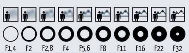 The apertures of all camera lenses examples f1, f1.4, f2, f2.8, f4, f5.6, f8, f11, f16, f22, f32, etc.