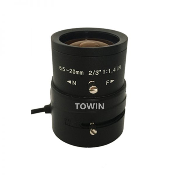 2/3″ 6.5-20mm Auto Iris F1.4 3MP C mount IR corrected CCTV lens.