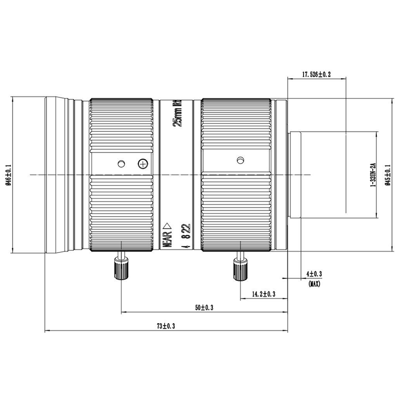 C-Mount 1/1.2″ 25mm low-distortion lens, manual iris and focus, F1.4, 8 Megapixel CCTV lens, IR-corrected.