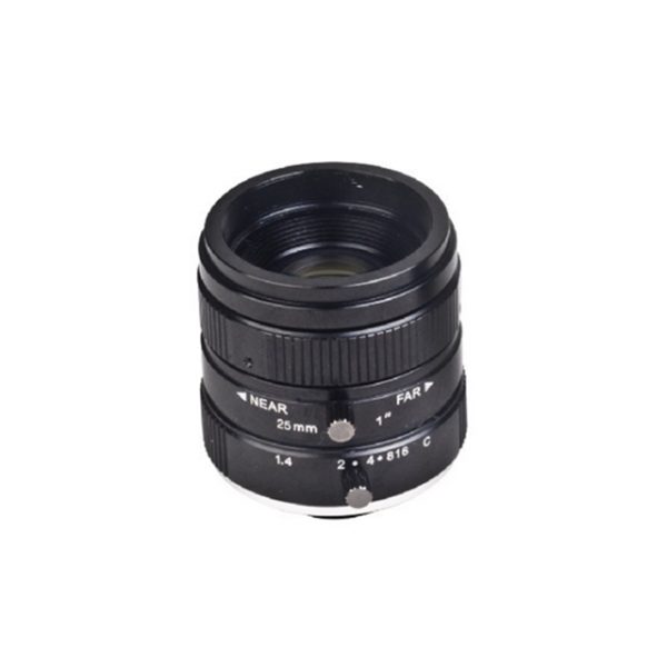 25mm wide-angle C-mount lens, low-distortion (<1%), high resolution 5MP, F1.4 low light sensitive lens.