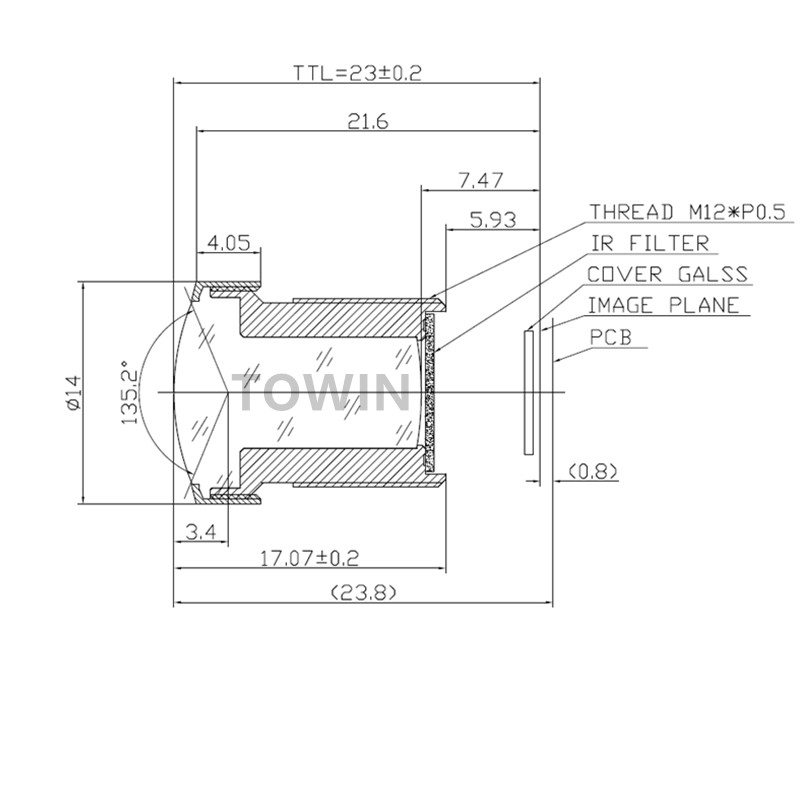 CCL1230420MPF Wide angle M12 S-mount 4mm board lens F2.0 12MP for IMX117 car view recorder camera