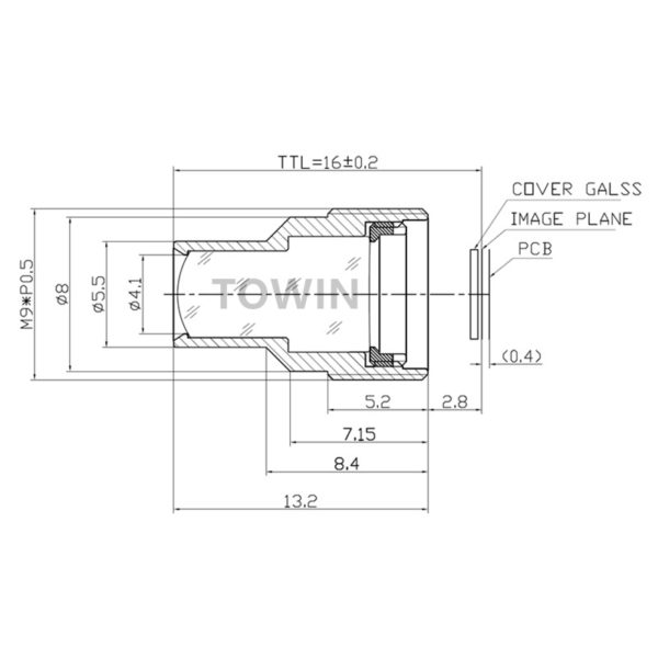 Low distortion 15mm F8.0 M9 board lens 1/2.3″ HD 5MP rectilinear scanning short TTL