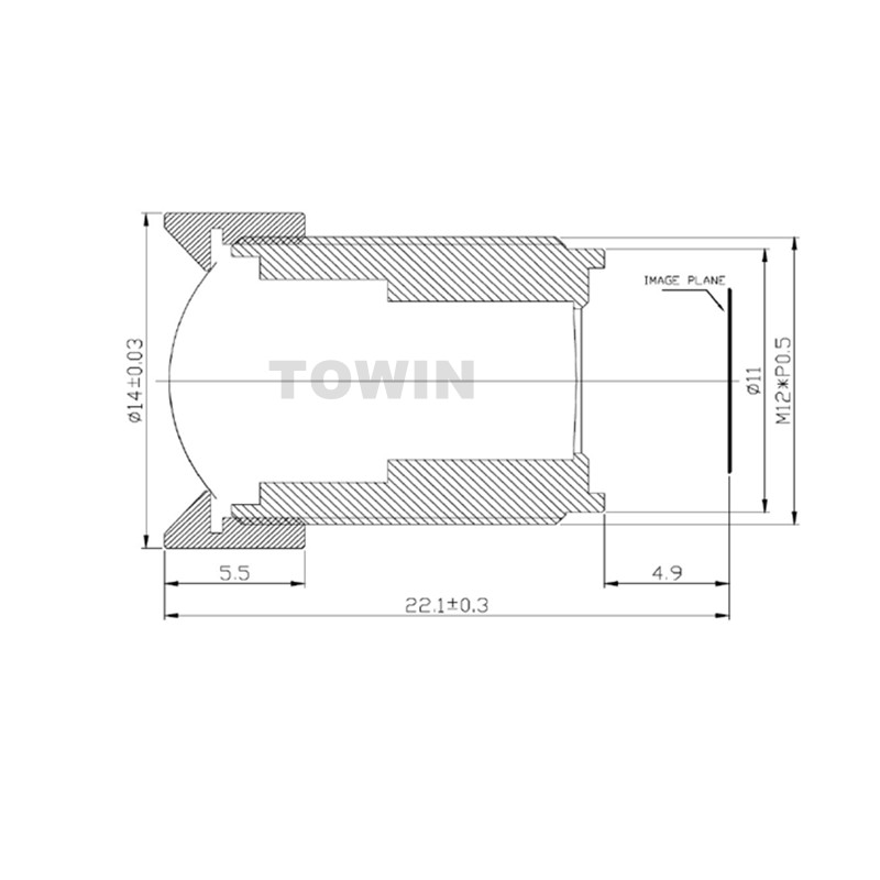 Low distortion wide angle 1/2.5″ 4.1mm 66° M12 mount lens with HD 5MP for rectilinear scanning