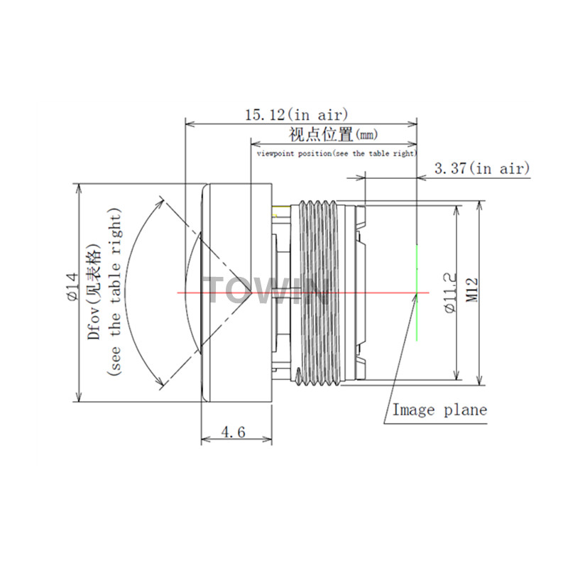 1/3″ 1/2.9″ 2.1mm F2.0, 4megapixel wide angle M12 S-mount board lens with short T.T.L. 15mm.