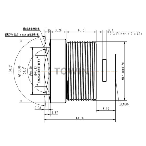 Wide angle M12 S-mount board lens 2.5mm short TTL OV4689 automotive car rear view