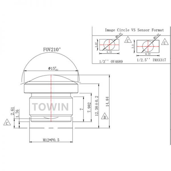 Fisheye lens 1/3″ Φ3 210° HD M12 mount lens F2.0 for 8MP 360 AR panoramic camera