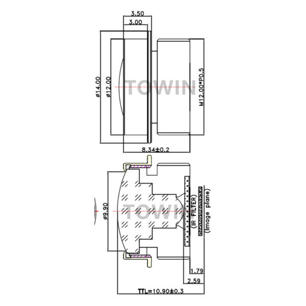 CCL13014MPF M12 S-mount wide angle 1.5mm board lens with short TTL for car rear view.