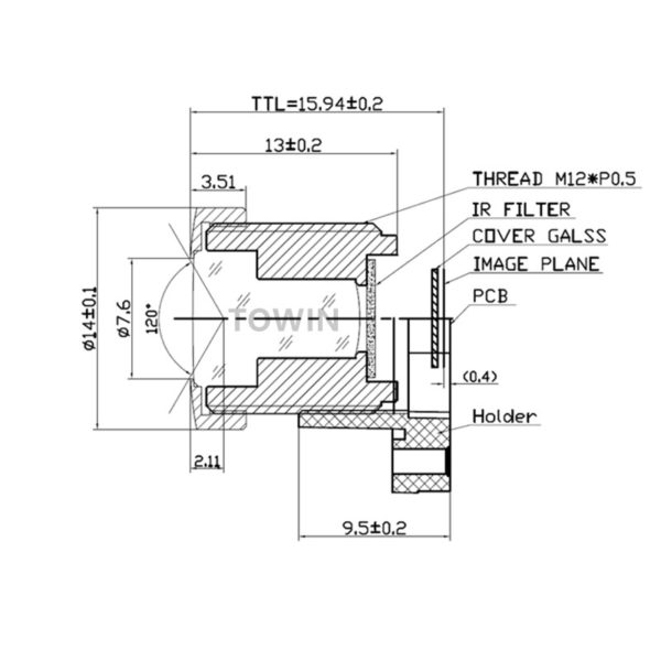Wide Angle M12 S-mount 2.6mm board lens car view recorder short TTL AR0330 3MP
