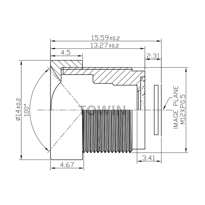CCL130298MPF Low distortion wide angle 3mm 1/3″ 77° M12 mount lens with HD 5MP rectilinear scanning