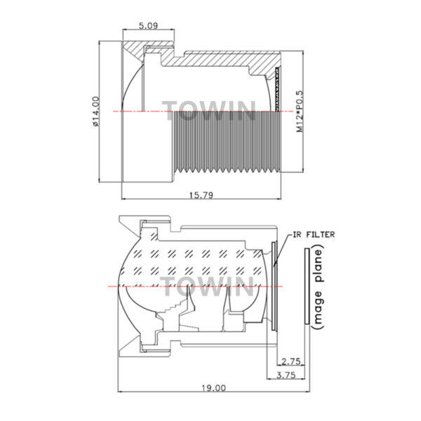 CCL13035MPF Low distortion wide angle 74° M12 s-mount board lens 1/3″ 3.5mm HD rectilinear scanning