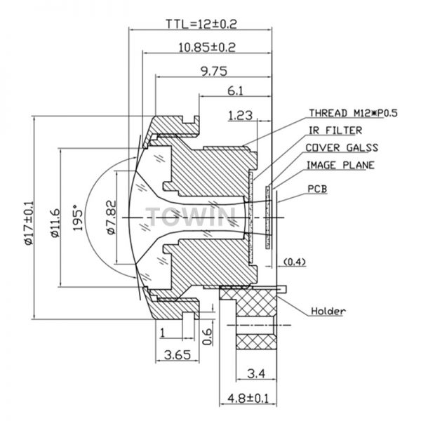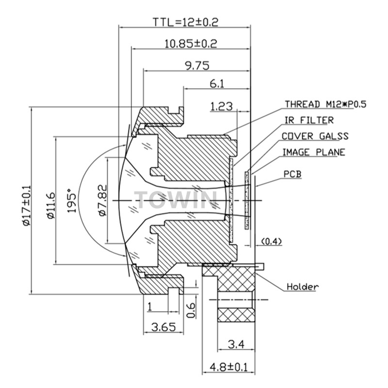 Fisheye HD lens waterproof M12 mount lens 1/3.2″ Φ2.9 205° F2.2 for 4MP OV4689 360 AR panoramic camera