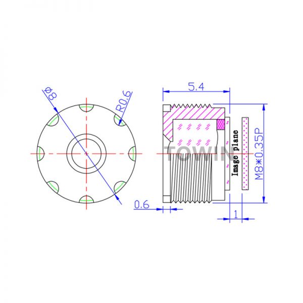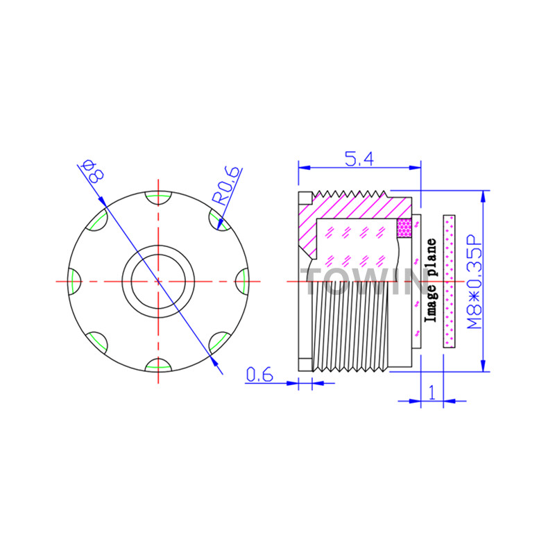 Low distortion wide angle 4.4mm 1/3.2″ 52° M8 mount lens for IMX179 HD 8MP rectilinear scanning