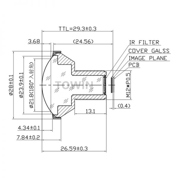 CCL2302423MPF Fisheye lens HD 1/2.7″ Φ6.6 180° M12 mount lens F2.3 for 10MP 360 AR panoramic camera