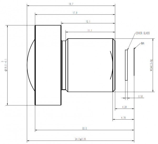1/2.3″, 2.8mm, HFOV 123 degree, F2.8 16MP S-mount lens.
