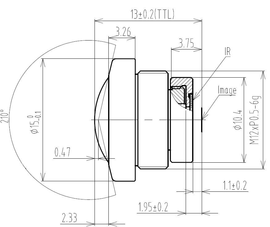 S00803021024F is a M12 mount fisheye lens. The image circle is Φ3.0, designed for 1/3″ sensors, such as OV4689, 4 megapixel (1/3.2”, IMX179, AR0330, 1/2.7”, OV2710, AR0230, 1/2.5”, IMX317, 1/2.8”, IMX322, IMX290), to get 210 degree. It is very low F-theta distortion <-4.5%.