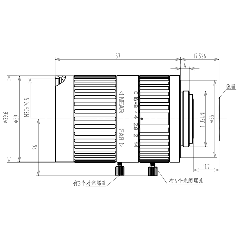 Industrial lens 2/3″ 50mm C-mount FA lens, 5-Megapixel low-distortion lens, manual iris and focus, F1.4~C.