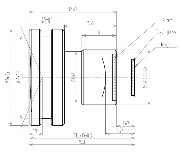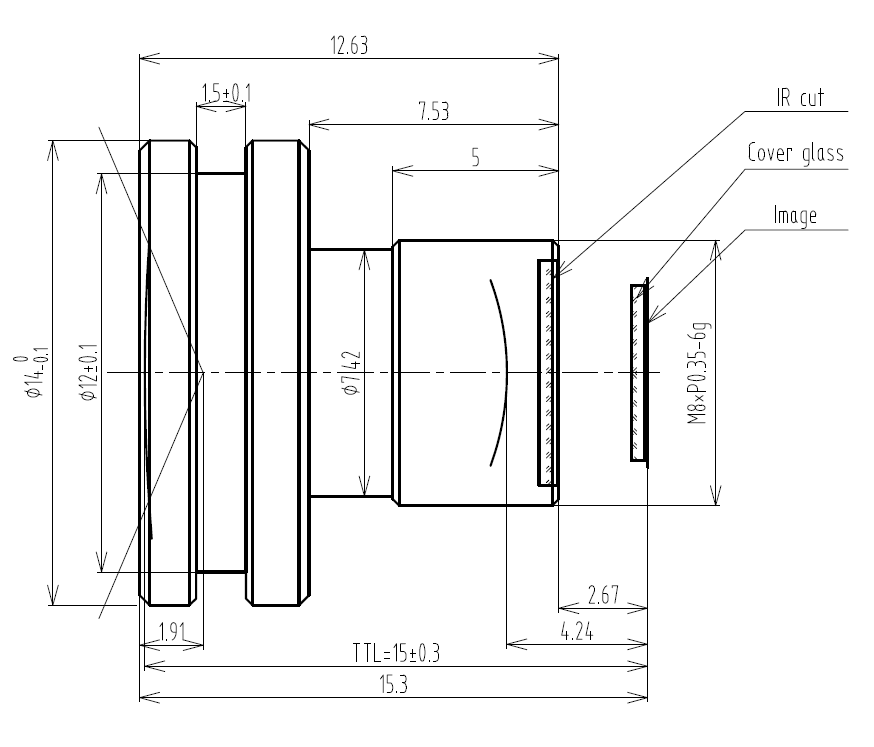 M802813209724F is a 2.8mm IP67 Automotive M8 Mount lens. It is designed for 1/3.2″ sensors, such as IMX179, AR0330. It is a 5 Mega Pixel HD lens. And it has very short T.T.L. 15mm.