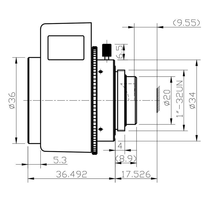 C-Mount 25mm low-distortion lens, 2-Megapixels, DC Auto iris, F1.4-C.