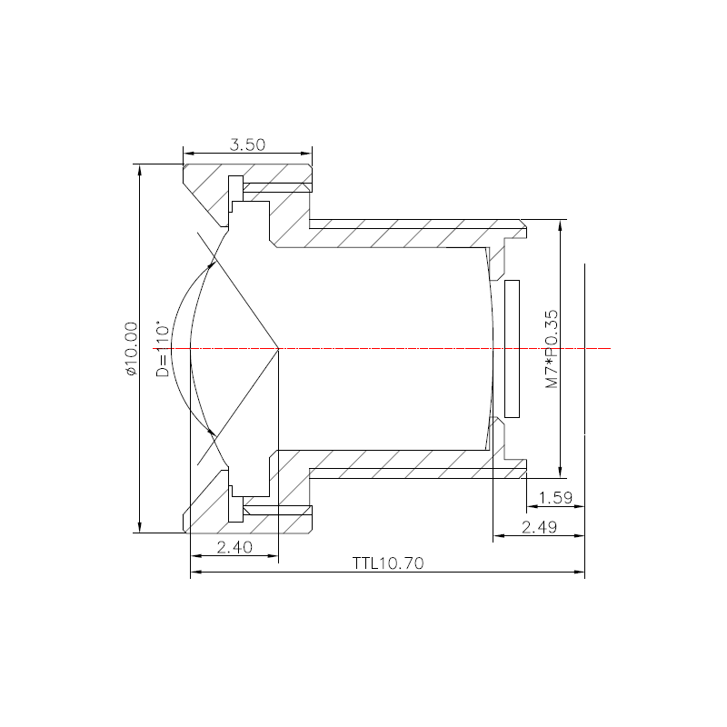 2.05mm low distortion wide-angle lens, F2.6 M7X0.35 mount lens, 1/4″ 5-megapixel CCTV lens.