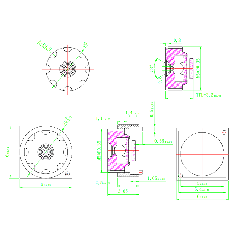 Low-distortion pinhole lens with Built-In IR Filter, 1/13″ Φ2.0mm M5x0.35 mount 60°(D) 1.0mm F2.8 for general imaging applications.