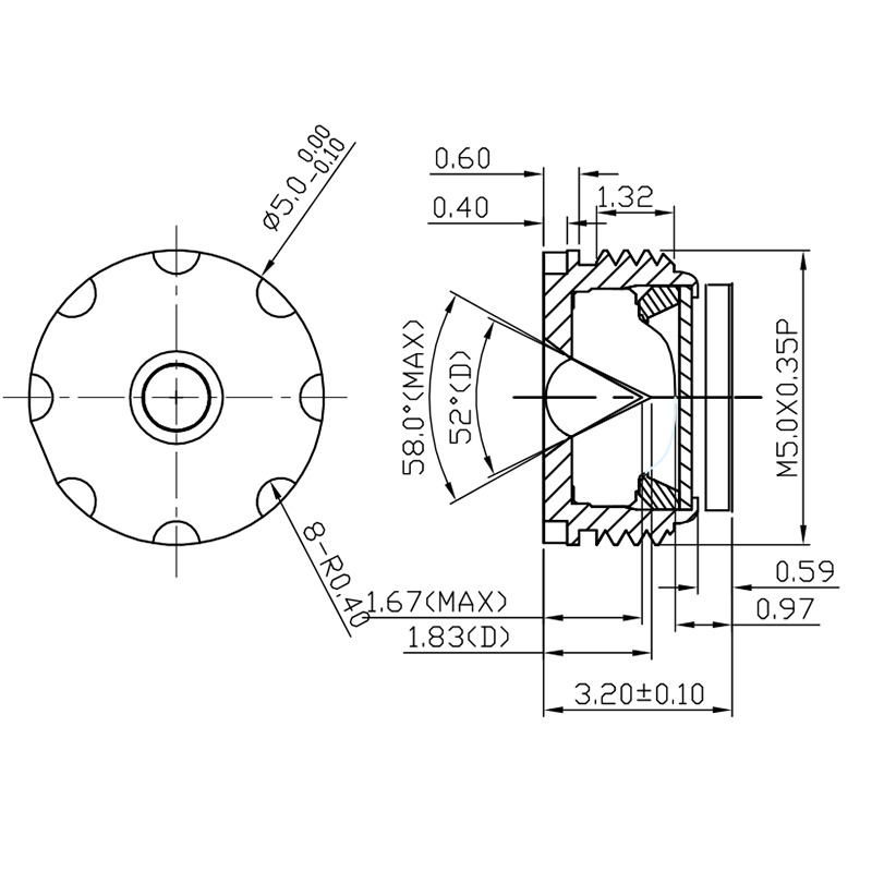 | F.O.V.(GC0308) | 52°(D=2.80) |