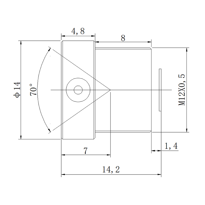 Low-distortion CCTV 2-Megapixel lens 1/2.8″ M12/S-mount 4.9mm focal length 65° field of view F2.4 for security surveillance.