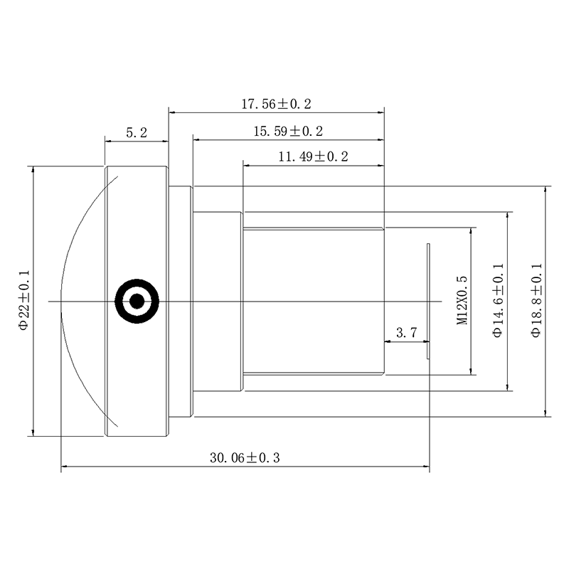 Low-distortion 12-Megapixel M12-mount CCTV lens, F1.6, suitable for surveillance application.