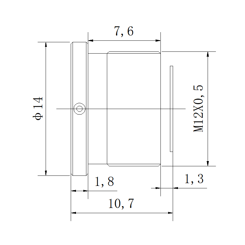 Low-distortion 1/2.5″ M12-mount 5-Megapixel wide-angle lens with 60° diagonal FOV, F3.0, and 0.2m MOD for security surveillance.