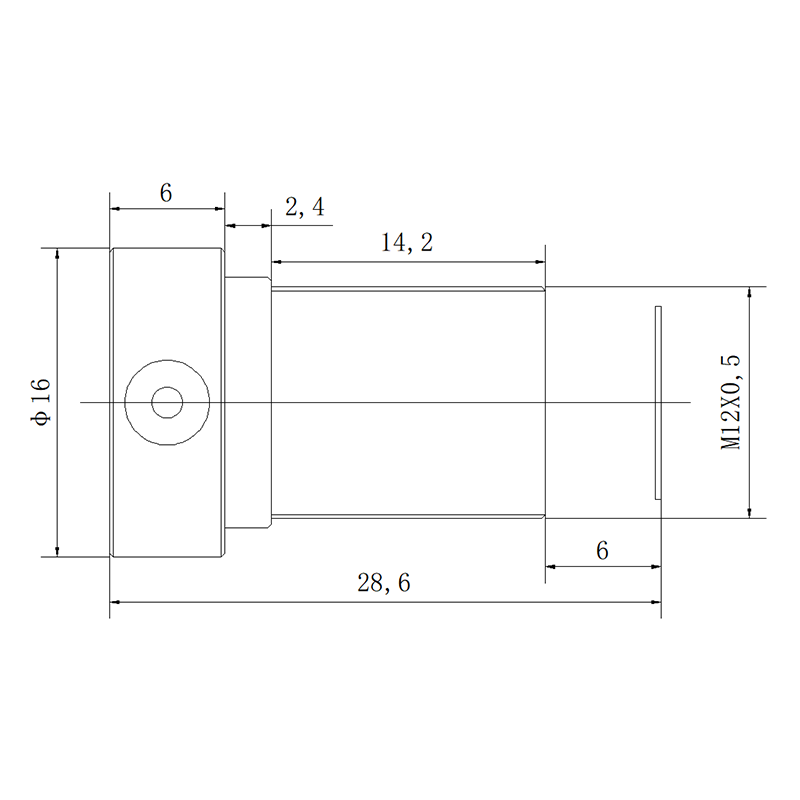Low-distortion 12-Megapixel 1/1.7″ M12 lens with 22mm 24° diagonal F.O.V., F2.8 aperture, Suitable for security Surveillance or imaging applications.