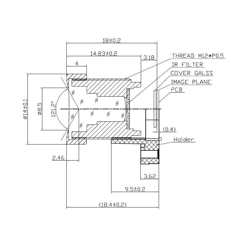 3.68mm Wide-angle CCTV lens with IR cut, 1/3″ M12/S-mount lens, F2.4 107° 3MP resolution, security surveillance lens.