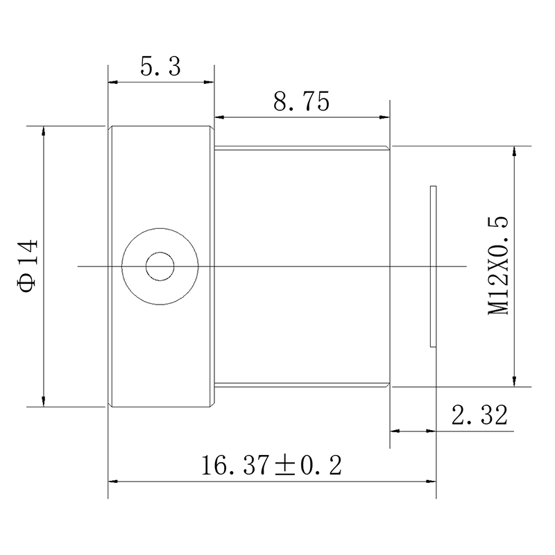 M12-mounted 5MP wide-angle lens with a 2.98mm focal length, low distortion (<-0.2%), fixed F2.4 aperture, and 850nm IR dual-pass filter.